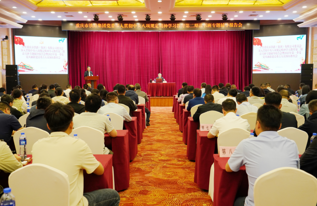 4月15日,市铁路集团党委举办深入贯彻中央八项规定精神学习教育第二期读书班专题辅导报告会暨2025年第四次党委理论学习中心组(扩大)学习会,深入学习贯彻习近平总书记关于加强党的作风建设的重要论述和习近平总书记视察重庆重要讲话重要指示精神,一体学习领会和贯彻落实中央八项规定精神及其实施细则,以自我革命精神推进党的作风建设。报告会由集团党委书记、董事长马虎主持。