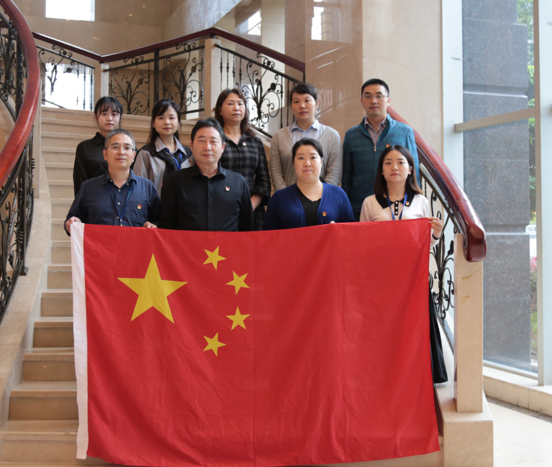 学习后,全体党员与国旗合影,以铮铮誓言表达对党和祖国的热爱与祝福。