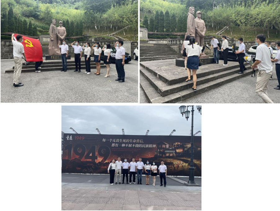 活动简介:为推动党史学习教育常态化长效化,引导全体党员牢记党的宗旨、珍惜党员身份、永葆先进本色,7月22日,规划发展部党支部组织开展“追寻红色记忆,传承革命精神”主题党日活动。全体党员前往红岩文化景区歌乐山松林坡参观学习,以重温入党誓词和献花仪式表达对英雄们深切的怀念及崇高的敬意。活动还组织观看了历史舞台剧《重庆·1949》。活动成效:此次活动让党员们在参观学习的过程中深入了解了英雄烈士的革命事迹,通过丰富的历史文物、详实的文献资料进一步了解革命的艰苦历程,追忆英雄们保家卫国的丰功伟绩。大家纷纷表示,将继承革命先辈遗志、发扬优良传统,牢记初心使命、坚定理想信念,永葆干事创业的激情与热情,自强不息、奋斗不止,为集团的高质量发展贡献一己之力。