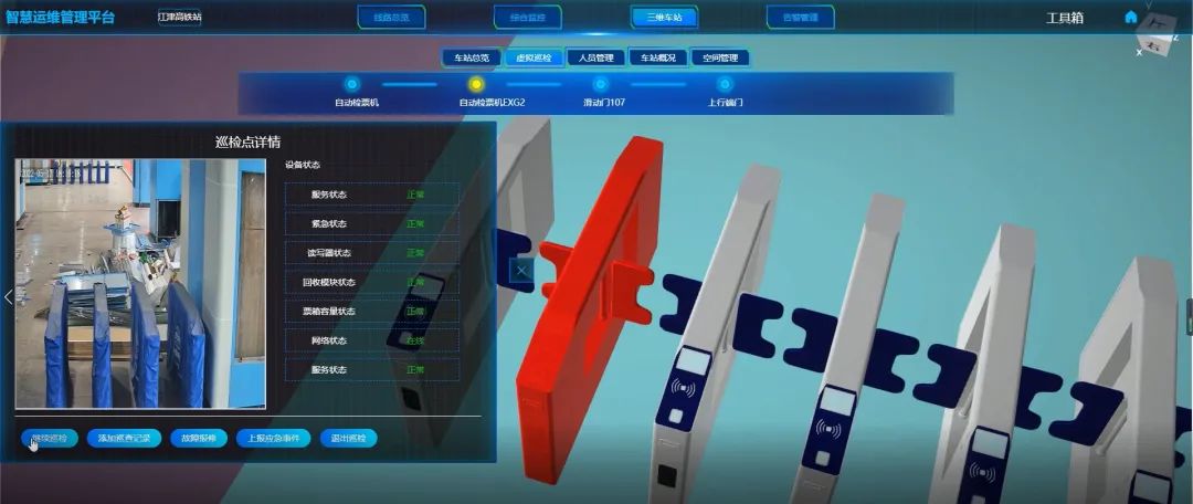 传统轨道交通车站开站及关站过程复杂,涉及设备繁多,且绝大部分设备需要人工启停,导致开关站耗时较长,而江跳线将一键开关站功能应用到全线车站。该功能结合运营实际需求优化了开关站流程和联动项目,通过对CCTV实时画面、广播语音播报、电扶梯、卷帘门等相关专业设备的联控,科技赋能提高客运人员开关站效率,为实现江跳线智能化管理和智慧化运营迈进重要的一步。